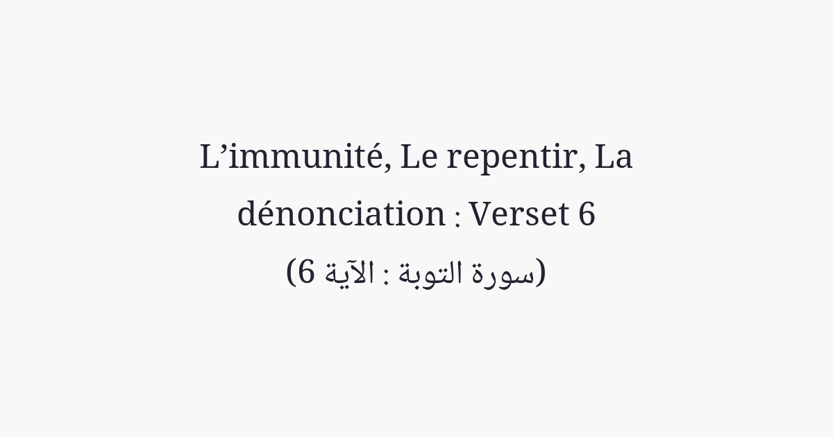 Et si l'un des associateurs te demande asile, accorde-le lui, afin qu'il entende la parole d'Allah, puis fais-le parvenir à son lieu de sécurité. Car ce sont des gens qui ne savent pas.