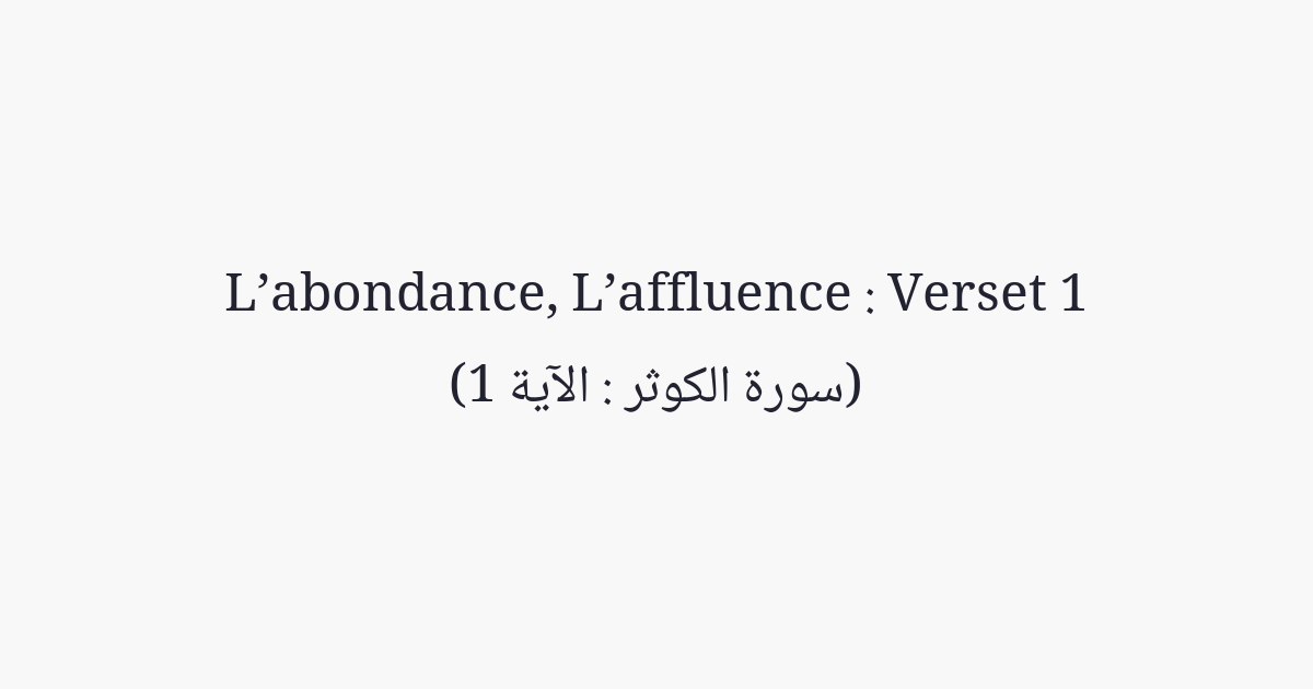 Nous t'avons certes, accordé l'Abondance.
