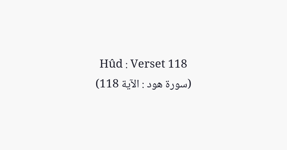 Et si ton Seigneur avait voulu, Il aurait fait des gens une seule communauté. Or, ils ne cessent d'être en désaccord (entre eux,)
