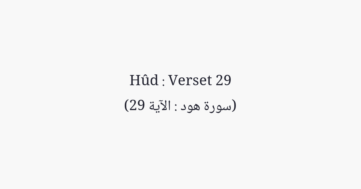 O mon peuple, je ne vous demande pas de richesse en retour. Mon salaire n'incombe qu'à Allah. Je ne repousserai point ceux qui ont cru, ils auront à rencontrer leur Seigneur. Mais je vous trouve des gens ignorants.