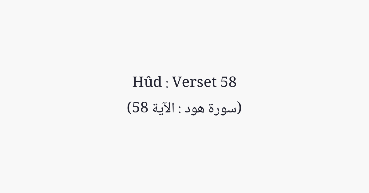Et quand vint Notre Ordre, Nous sauvâmes par une miséricorde de Notre part, Hûd et ceux qui avec lui avaient cru. Et Nous les sauvâmes d'un terrible châtiment.