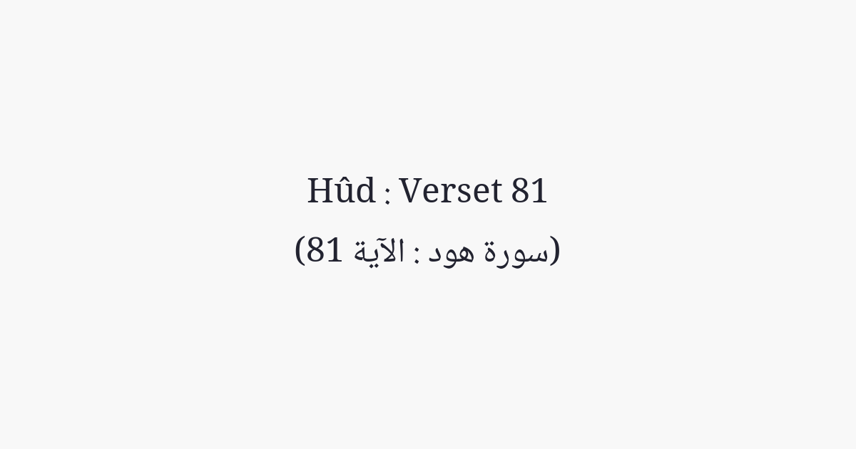 Alors [les hôtes] dirent: «O Lot, nous sommes vraiment les émissaires de ton Seigneur. Ils ne pourront jamais t'atteindre. Pars avec ta famille à un moment de la nuit. Et que nul d'entre vous ne se retourne en arrière. Exception faite de ta femme qui sera atteinte par ce qui frappera les autres. Ce qui les menace s'accomplira à l'aube. L'aube n'est-elle pas proche?»
