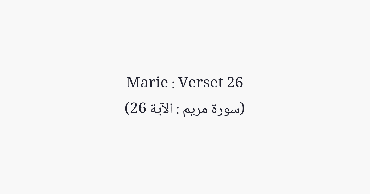 Mange donc et bois et que ton œil se réjouisse! Si tu vois quelqu'un d'entre les humains, dis [lui:] «Assurément, j'ai voué un jeûne au Tout Miséricordieux: je ne parlerai donc aujourd'hui à aucun être humain».