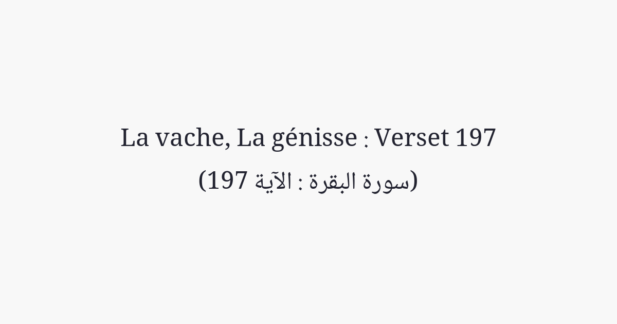 Le pèlerinage a lieu dans des mois connus. Si l'on se décide de l'accomplir, alors point de rapport sexuel, point de perversité, point de dispute pendant le pèlerinage. Et le bien que vous faites, Allah le sait. Et prenez vos provisions; mais vraiment la meilleure provision est la piété. Et redoutez-Moi, ô doués d'intelligence