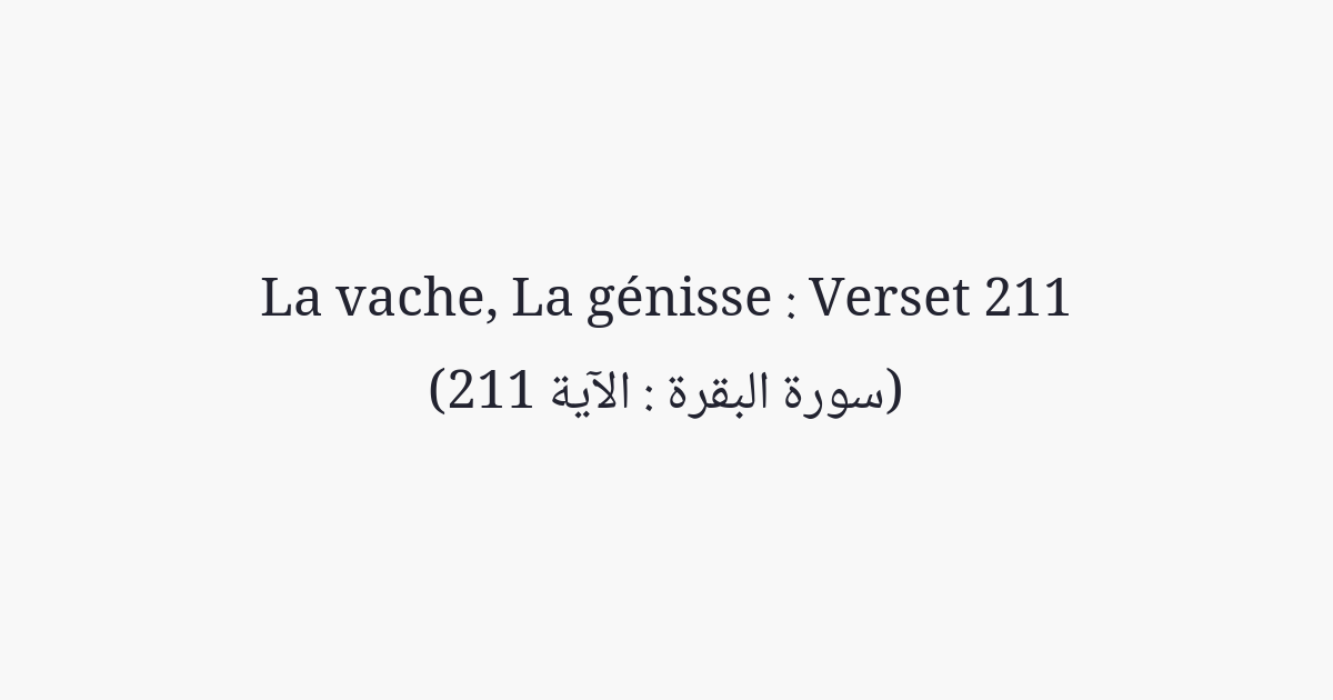 Demande aux enfants d'Israël combien de miracles évidents Nous leur avons apportés! Or, quiconque altère le bienfait d'Allah après qu'il lui soit parvenu... alors, Allah vraiment est dur en punition.