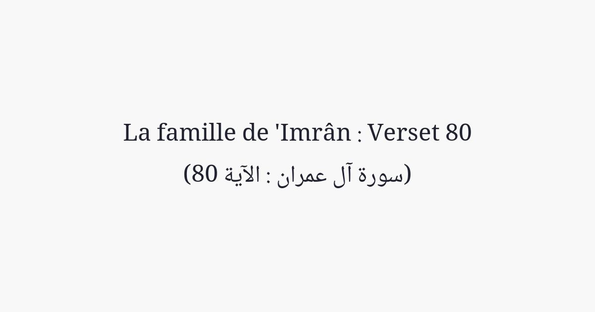 Et il ne va pas vous commander de prendre pour seigneurs anges et prophètes. Vous commanderait-il de rejeter la foi, vous qui êtes Musulmans?