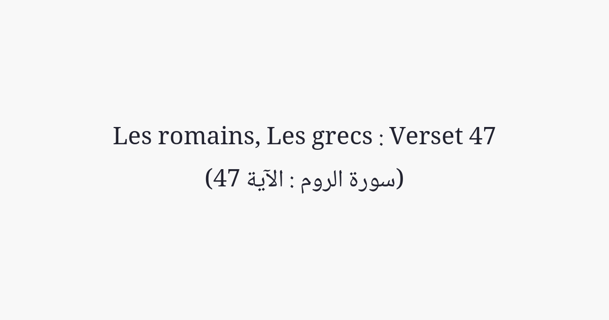 Nous avons effectivement envoyé avant toi des Messagers vers leurs peuples et ils leur apportèrent les preuves. Nous Nous vengeâmes de ceux qui commirent les crimes [de la négation]; et c'était Notre devoir de secourir les croyants.