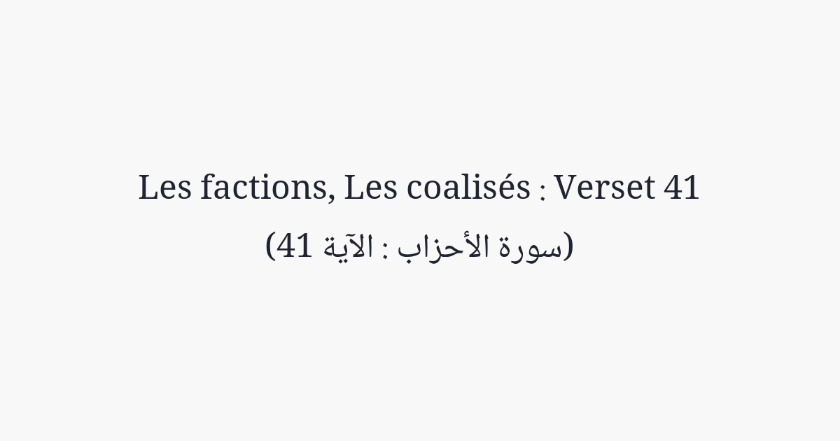 O vous qui croyez! Evoquez Allah d'une façon abondante,