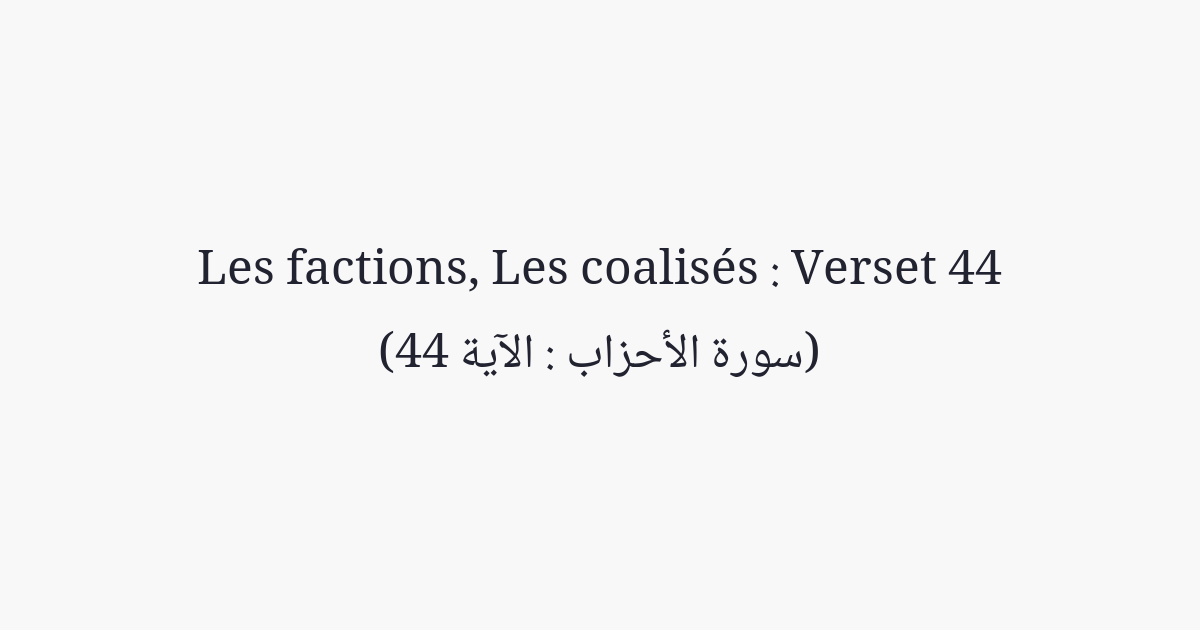 Leur salutation au jour où ils Le rencontreront sera: «Salâm» [paix], et Il leur a préparé une généreuse récompense.