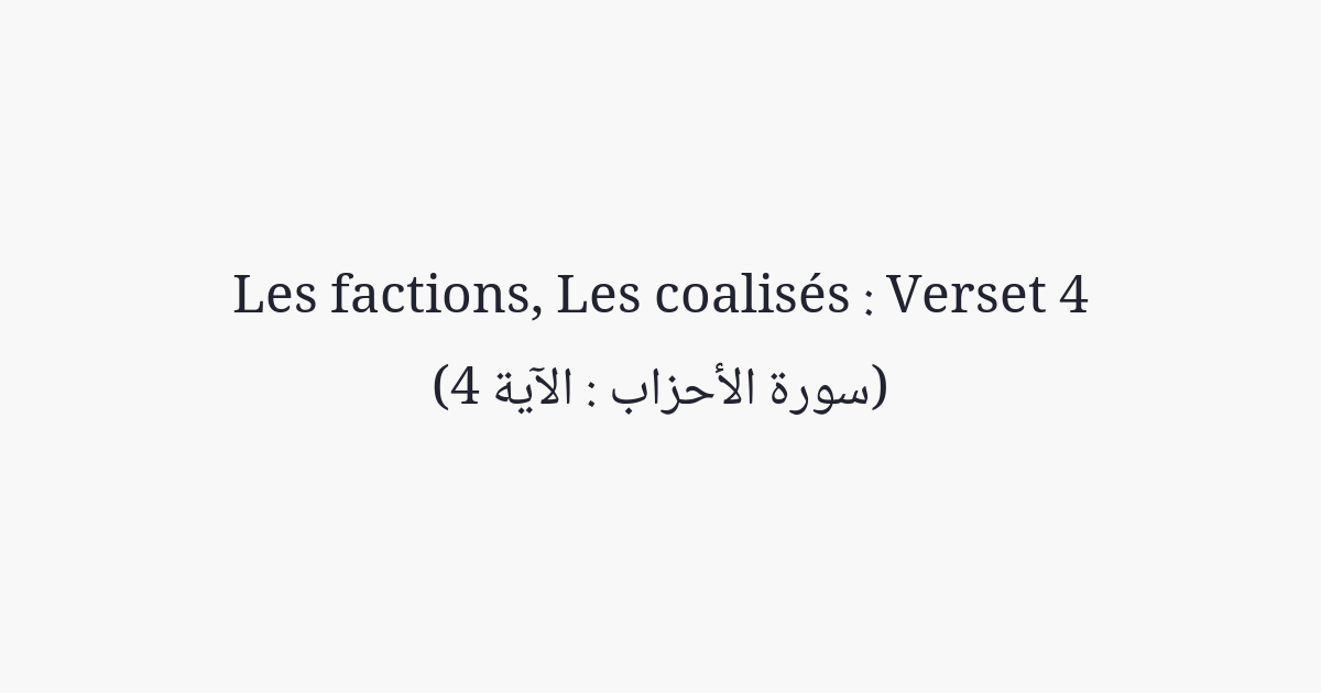 Allah n'a pas placé à l'homme deux cœurs dans sa poitrine. Il n'a point assimilé à vos mères vos épouses [à qui vous dites en les répudiant]: «Tu es [aussi illicite] pour moi que le dos de ma mère». Il n'a point fait de vos enfants adoptifs vos propres enfants. Ce sont des propos [qui sortent] de votre bouche. Mais Allah dit la vérité et c'est Lui qui met [l'homme] dans la bonne direction.