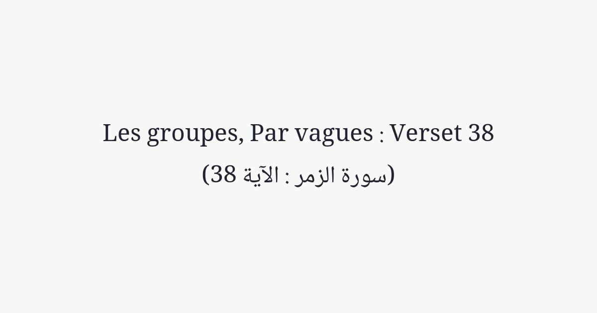 Si tu leur demandais: «Qui a créé les cieux et la terre?», Ils diraient assurément: «Allah». Dis: «Voyez-vous ceux que vous invoquez en dehors d'Allah; si Allah me voulait du mal, est-ce que [ces divinités] pourraient dissiper Son mal? Ou s'Il me voulait une miséricorde, pourraient-elles retenir Sa miséricorde?» - Dis: «Allah me suffit: c'est en Lui que placent leur confiance ceux qui cherchent un appui».