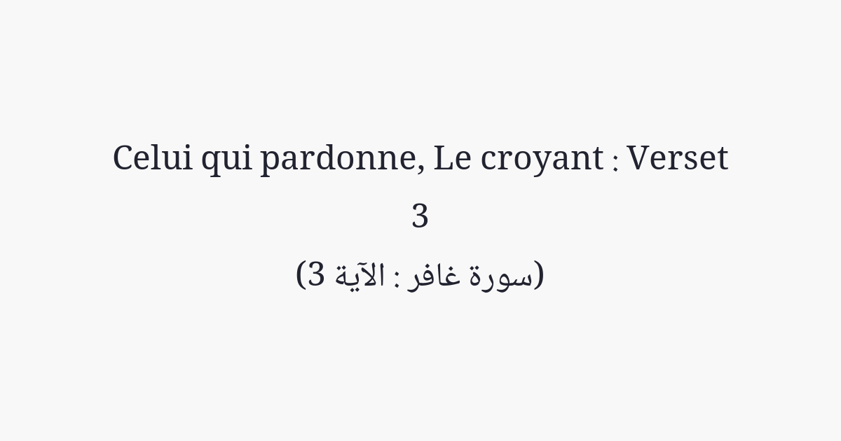 Le Pardonneur des péchés, l'Accueillant au repentir, le Dur en punition, le Détenteur des faveurs. Point de divinité à part Lui et vers Lui est la destination.