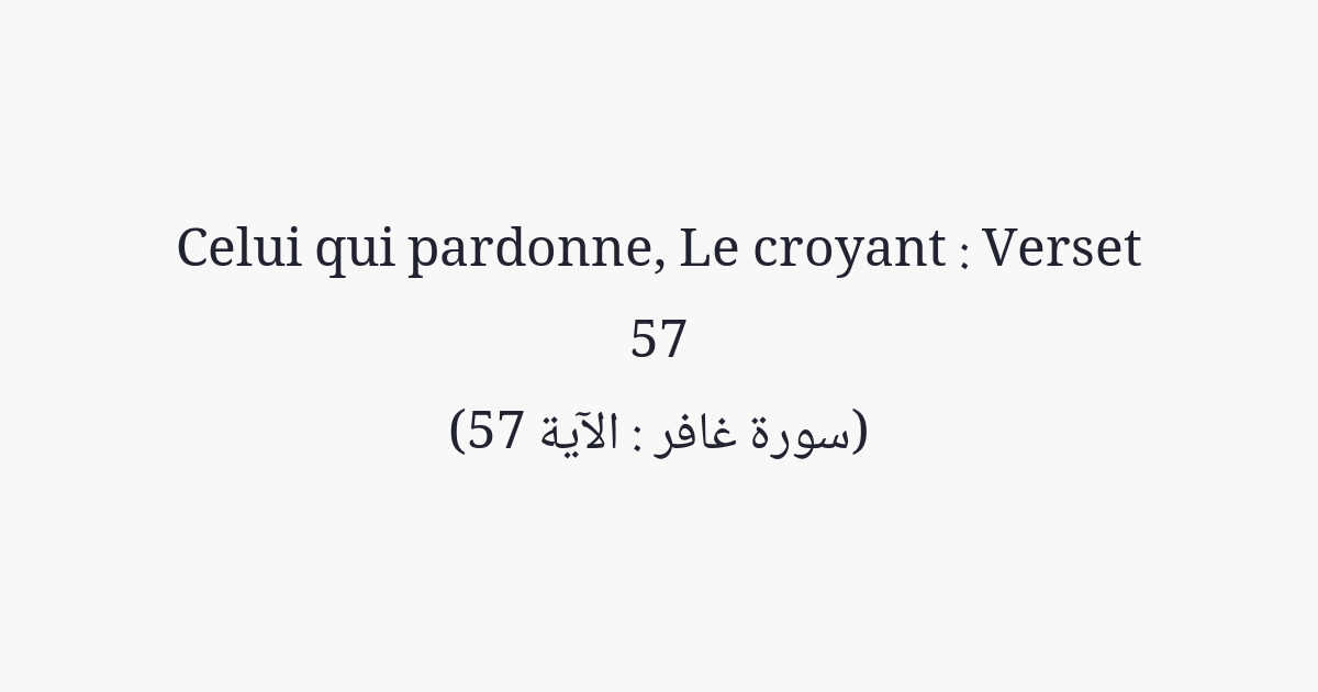 لَخَلْقُ ٱلسَّمَٰوَٰتِ وَٱلْأَرْضِ أَكْبَرُ مِنْ خَلْقِ ٱلنَّاسِ وَلَٰكِنَّ أَكْثَرَ ٱلنَّاسِ لَا يَعْلَمُونَ