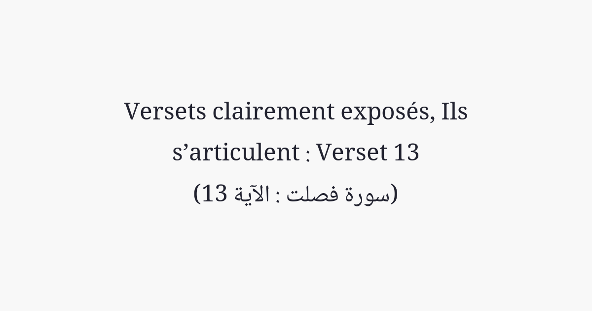 S'ils s'en détournent, alors dis-leur; «Je vous ai avertis d'une foudre semblable à celle qui frappa les 'Aad et les Tamûd».