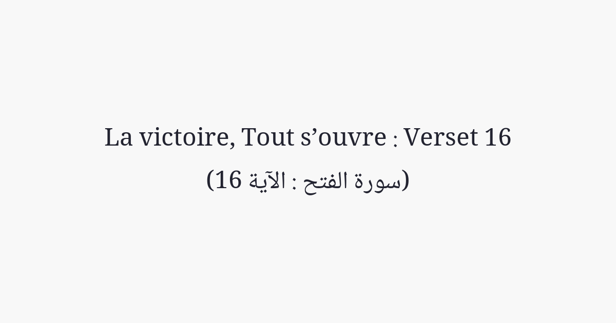 Dis à ceux des Bédouins qui restèrent en arrière: «vous serez bientôt appelés contre des gens d'une force redoutable. Vous les combattrez à moins qu'ils n'embrassent l'Islam, si vous obéissez, Allah vous donnera une belle récompense, et si vous vous détournez comme vous vous êtes détournés auparavant, Il vous châtiera d'un châtiment douloureux».