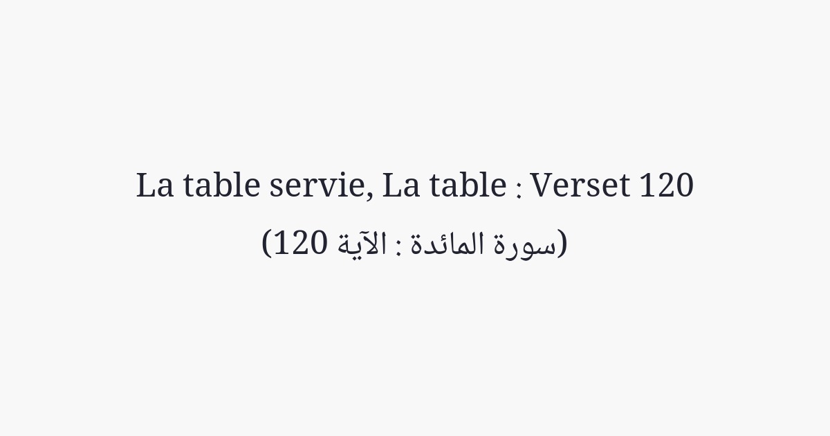 O gens du Livre! Notre Messager (Muhammad) est venu pour vous éclairer après une interruption des messagers afin que vous ne disiez pas: «Il ne nous est venu ni annonciateur ni avertisseur». Voilà, certes, que vous est venu un annonciateur et un avertisseur. Et Allah est Omnipotent.