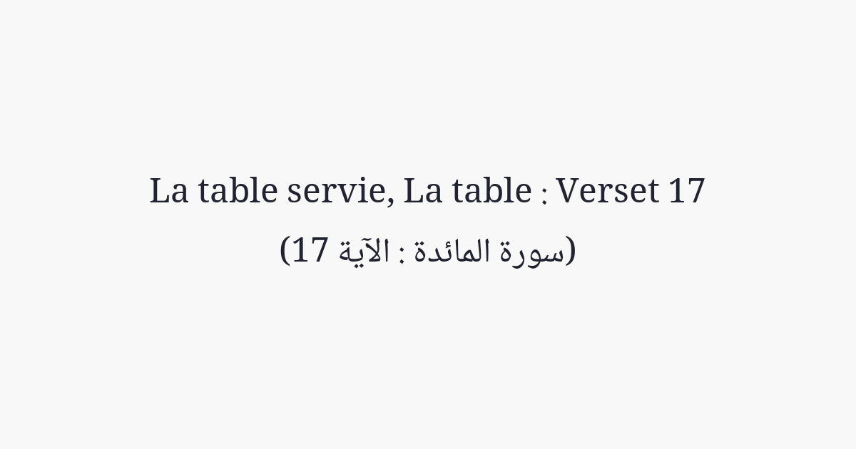 Certes sont mécréants ceux qui disent: «Allah, c'est le Messie, fils de Marie!» - Dis: «Qui donc détient quelque chose d'Allah (pour L'empêcher), s'Il voulait faire périr le Messie, fils de Marie, ainsi que sa mère et tous ceux qui sont sur la terre?... A Allah seul appartient la royauté des cieux et de la terre et de ce qui se trouve entre les deux». Il crée ce qu'Il veut. Et Allah est Omnipotent.