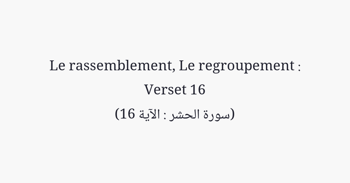 ils sont semblables au Diable quand il dit à l'homme: «Sois incrédule». Puis quand il a mécru, il dit: «Je te désavoue car je redoute Allah, le Seigneur de l'Univers».