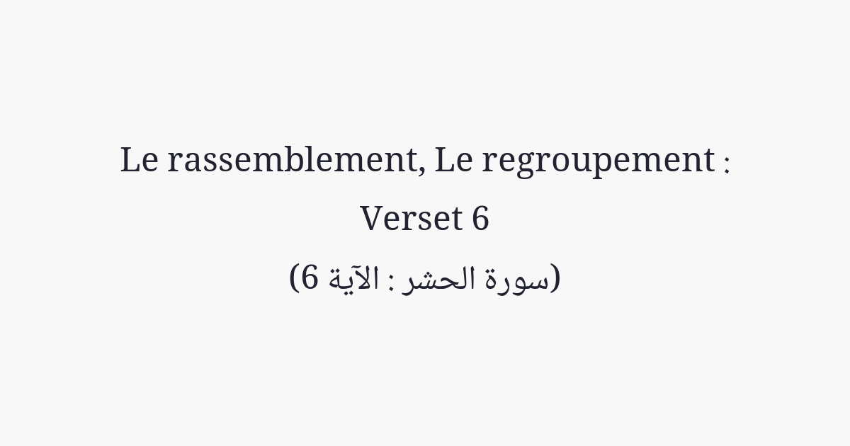 Le butin provenant de leurs biens et qu'Allah a accordé sans combat à Son Messager, vous n'y aviez engagé ni chevaux, ni chameaux; mais Allah, donne à Ses messagers la domination sur qui Il veut et Allah est Omnipotent.