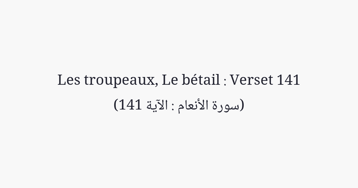 C'est Lui qui a créé les jardins, treillagés et non treillagés; ainsi que les palmiers et la culture aux récoltes diverses; [de même que] l'olive et la grenade, d'espèces semblables et différentes. Mangez de leurs fruits, quand ils en produisent; et acquittez-en les droits le jour de la récolte. Et ne gaspillez point car Il n'aime pas les gaspilleurs.