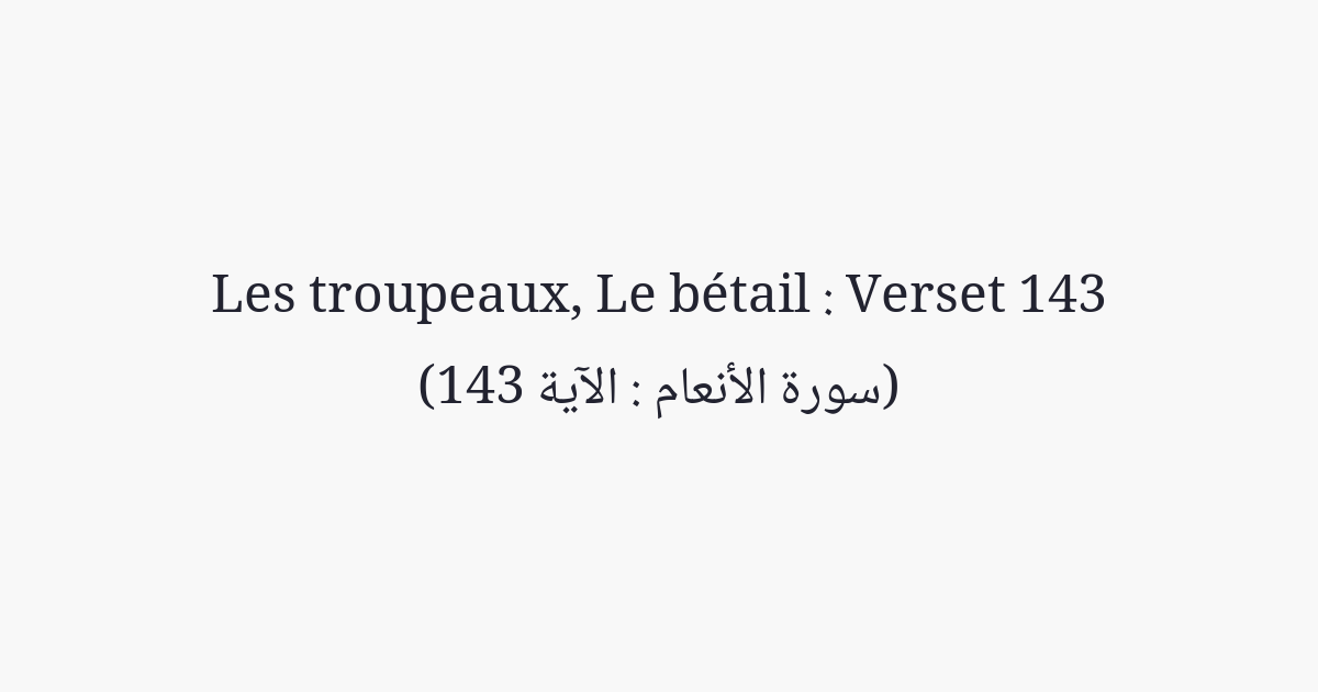 (Il en a créé) huit, en couples: deux pour les ovins, deux pour les caprins... dis: «Est-ce les deux mâles qu'Il a interdits ou les deux femelles, ou ce qui est dans les matrices des deux femelles? Informez-moi de toute connaissance, si vous êtes véridiques»