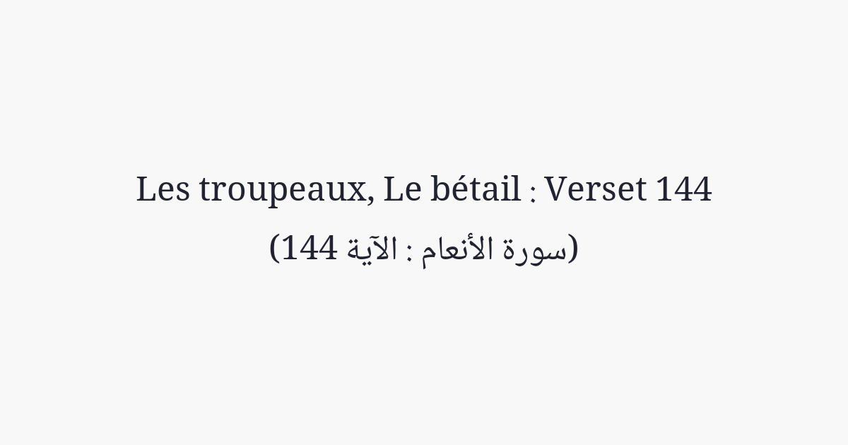 ...deux pour les camélidés, deux pour les bovins... Dis: «Est-ce les deux mâles qu'Il a interdits ou les deux femelles, ou ce qui est dans les matrices des deux femelles? Ou bien étiez-vous témoins quand Allah vous l'enjoignit?» Qui est donc plus injuste que celui qui invente un mensonge contre Allah pour égarer les gens sans se baser sur aucun savoir? Allah ne guide pas les gens injustes.