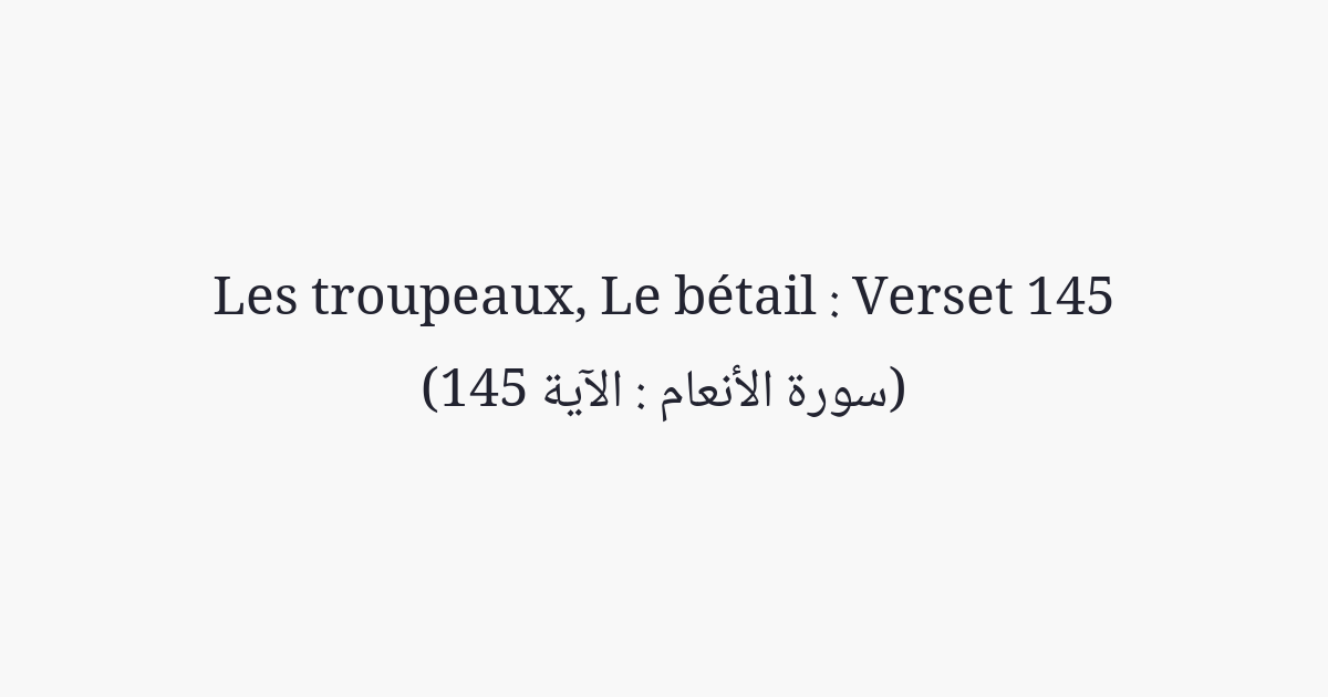 Dis: «Dans ce qui m'a été révélé, je ne trouve d'interdit, à aucun mangeur d'en manger, que la bête (trouvée) morte, ou le sang qu'on a fait couler, ou la chair de porc - car c'est une souillure - ou ce qui, par perversité, a été sacrifié à autre qu'Allah». Quiconque est contraint, sans toutefois abuser ou transgresser, ton Seigneur est certes Pardonneur et Miséricordieux.