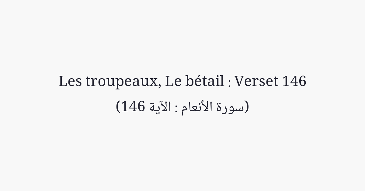 Aux Juifs, Nous avons interdit toute bête à ongle unique. Des bovins et des ovins, Nous leurs avons interdit les graisses, sauf ce que portent leur dos, leurs entrailles, ou ce qui est mêlé à l'os. Ainsi les avons-Nous punis pour leur rébellion. Et Nous sommes bien véridiques.