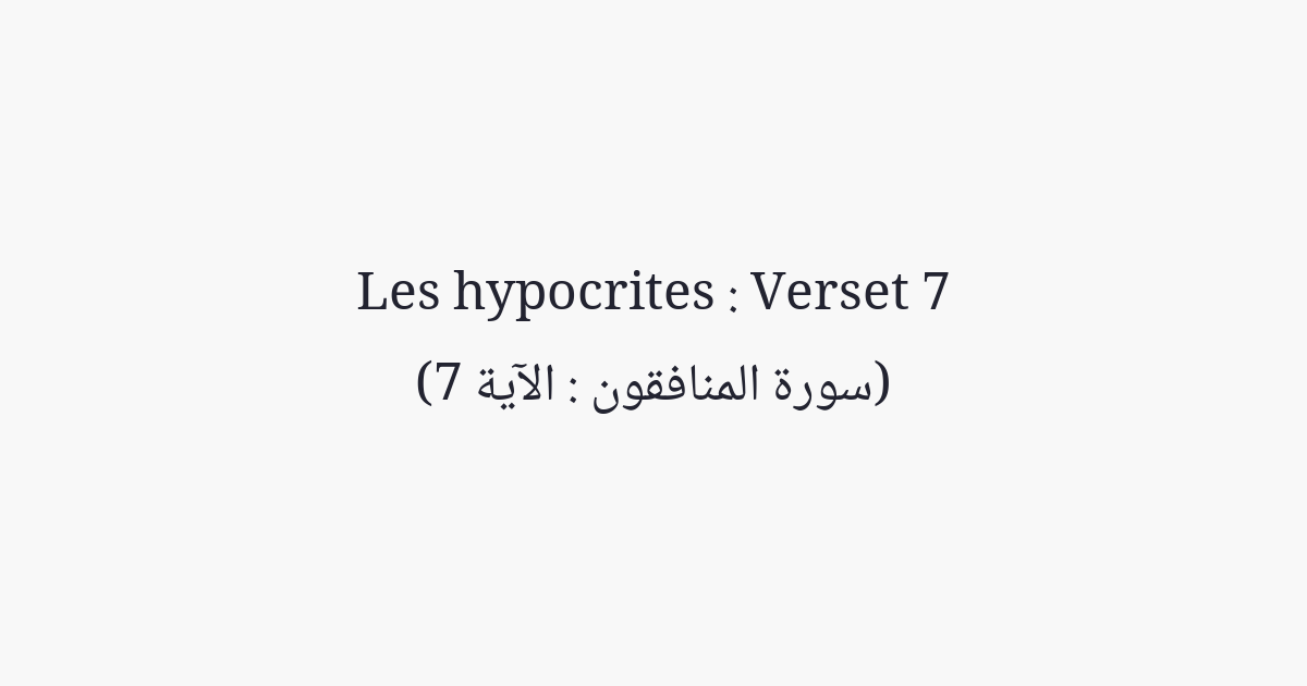 Ce sont eux qui disent: «Ne dépensez point pour ceux qui sont auprès du Messager d'Allah, afin qu'ils se dispersent». Et c'est à Allah qu'appartiennent les trésors des cieux et de la terre, mais les hypocrites ne comprennent pas.