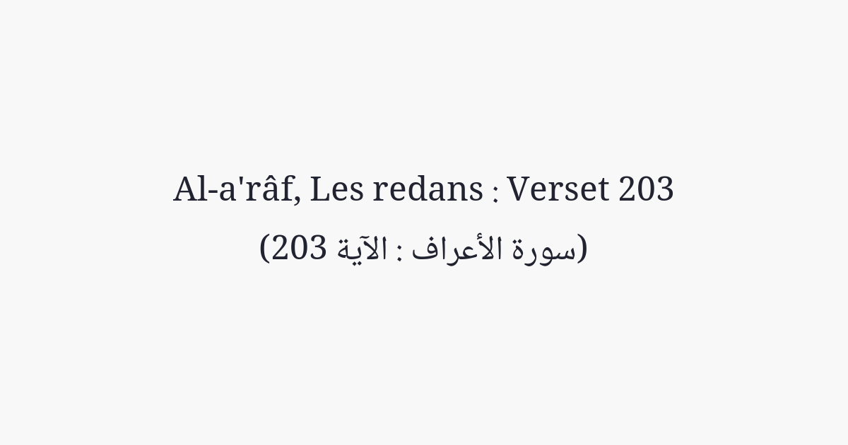 Quand tu ne leur apportes pas de miracle, ils disent: «Pourquoi ne l'inventes-tu pas?» Dis: «Je ne fais que suivre ce qui m'est révélé de mon Seigneur. Ces [versets coraniques] sont des preuves illuminantes venant de votre Seigneur, un guide et une grâce pour des gens qui croient.