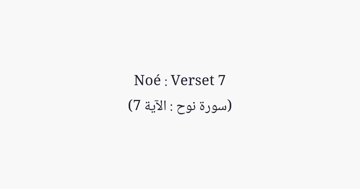 Et chaque fois que je les ai appelés pour que Tu leur pardonnes, ils ont mis leurs doigts dans leurs oreilles. se sont enveloppés de leurs vêtements, se sont entêtés et se sont montrés extrêmement orgueilleux.