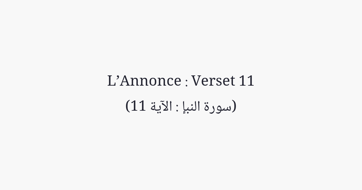 Nous vous avons avertis d'un châtiment bien proche, le jour où l'homme verra ce que ses deux mains ont préparé; et l'infidèle dira: «Hélas pour moi! Comme j'aurais aimé n'être que poussière».