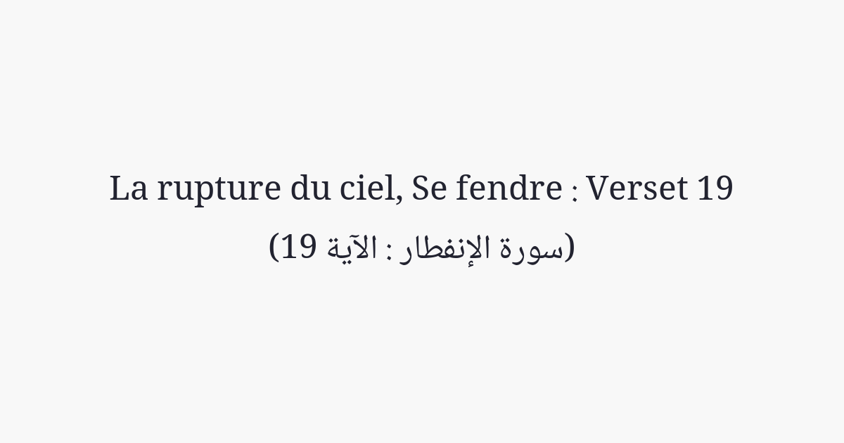 Le jour où aucune âme ne pourra rien en faveur d'une autre âme. Et ce jour-là, le commandement sera à Allah.