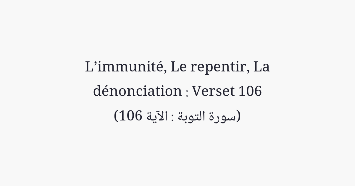 Et [Il accueillit le repentir] des trois qui étaient restés à l'arrière si bien que, toute vaste qu'elle fût, la terre leur paraissait exiguë; ils se sentaient à l'étroit, dans leur propre personne et ils pensaient qu'il n'y avait d'autre refuge d'Allah qu'auprès de Lui. Puis Il agréa leur repentir pour qu'ils reviennent [à Lui], car Allah est l'accueillant au repentir, le Miséricordieux.