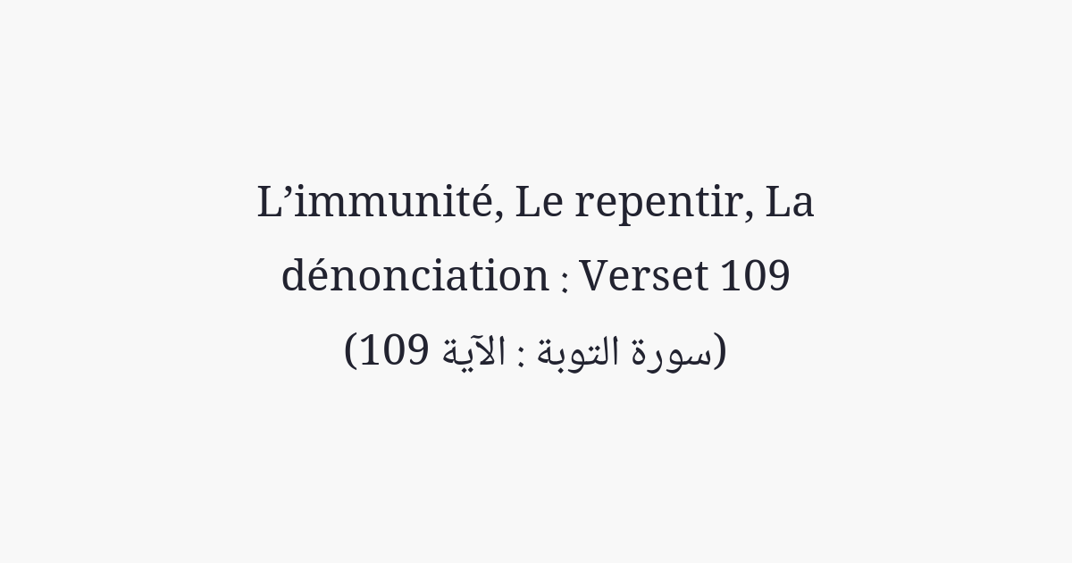 Lequel est plus méritant? Est-ce celui qui a fondé son édifice sur la piété et l'agrément d'Allah, ou bien celui qui a placé les assises de sa construction sur le bord d'une falaise croulante et qui croula avec lui dans le feu de l'Enfer? Et Allah ne guide pas les gens injustes.