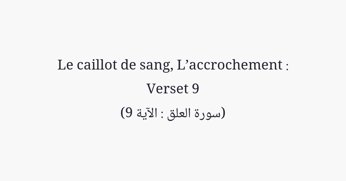 C'est Lui qui vous a créés d'un seul être dont il a tiré son épouse, pour qu'il trouve de la tranquillité auprès d'elle; et lorsque celui-ci eut cohabité avec elle, elle conçut une légère grossesse, avec quoi elle se déplaçait (facilement). Puis lorsqu'elle se trouva alourdie, tous deux invoquèrent leur Seigneur: «Si Tu nous donnes un (enfant) sain, nous serons certainement du nombre des reconnaissants».