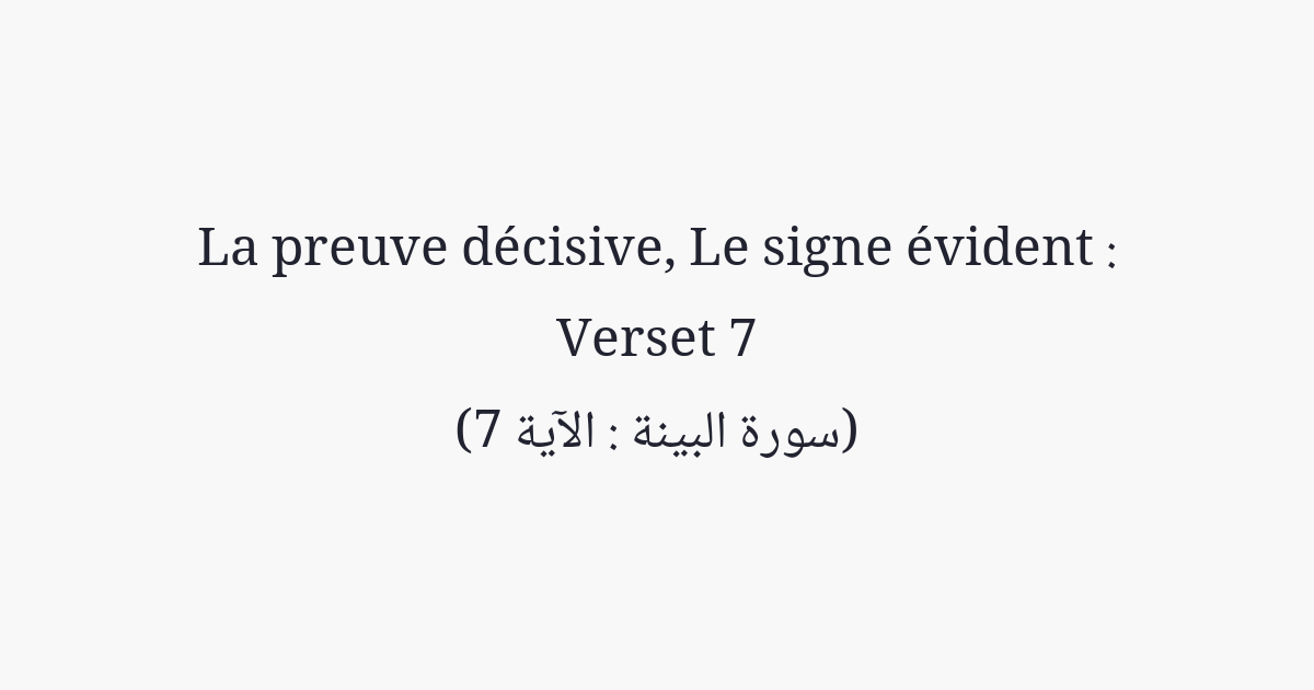 Quant à ceux qui croient et accomplissent les bonnes œuvres, ce sont les meilleurs de toute la création.